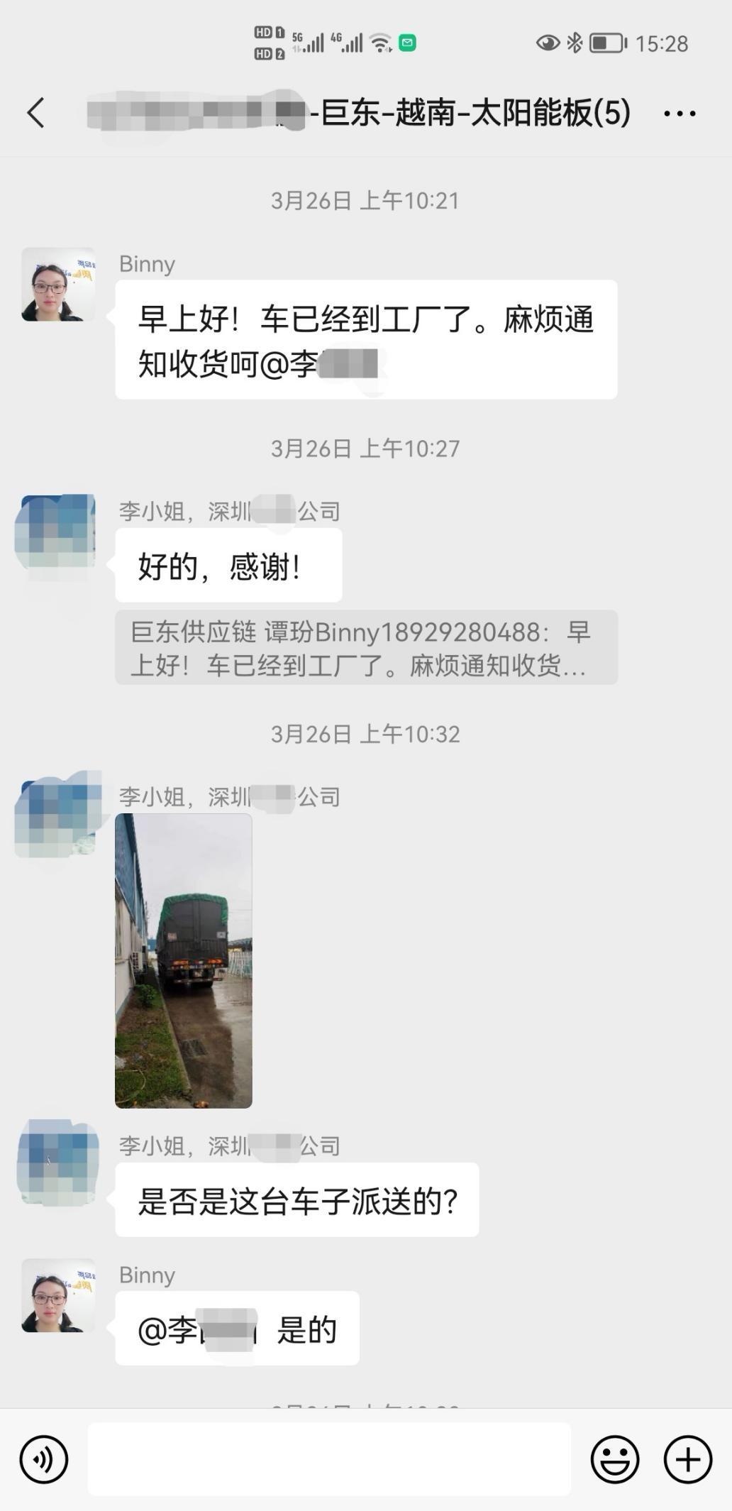 此票完結(jié)后,客人主動(dòng)打電話來說,你們?cè)侥蠈>€的時(shí)效真是驚訝到我了!我們之前的物流公司最快也是3天才能到,有時(shí)候要4-5天,你們太給力了,發(fā)票開來馬上讓財(cái)務(wù)給你們付款。感謝客戶的支持,這就是我們巨東物流的正常時(shí)效,其實(shí)在3月25日晚上貨物已經(jīng)到達(dá)工廠附近了,知道工廠晚上沒人上班,所以才3月26日一早到達(dá)工廠的。至此該客戶成了巨東物流長期合作的優(yōu)質(zhì)客戶,除了發(fā)貨到越南以外,該客人從深圳出口到美國、歐洲的貨物,從越南工廠發(fā)往美國的貨物全部都交給巨東物流訂艙、發(fā)貨了。