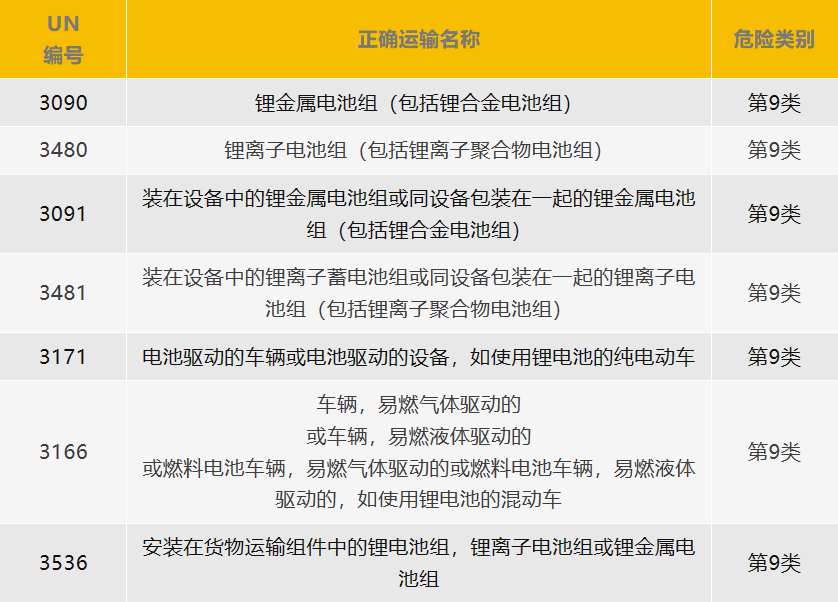 從產(chǎn)品類型的角度,上述四大類則再次細(xì)分為7個條目,我們通過對應(yīng)的UN編號,可以區(qū)分鋰電池貨物在運(yùn)輸中的不同產(chǎn)品類型。